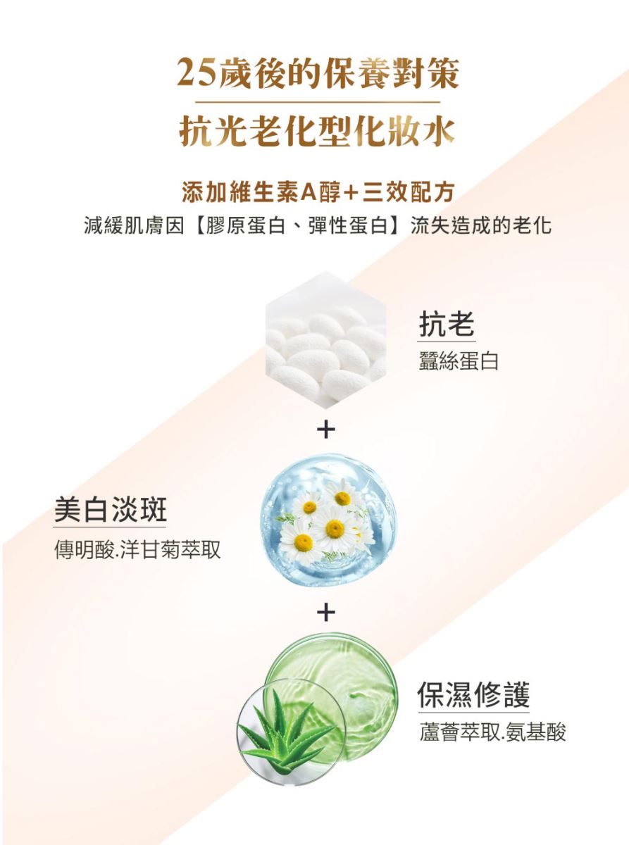 主成分: 維生素A、保濕胺基酸、傳明酸、蘆薈萃取、洋甘菊萃取